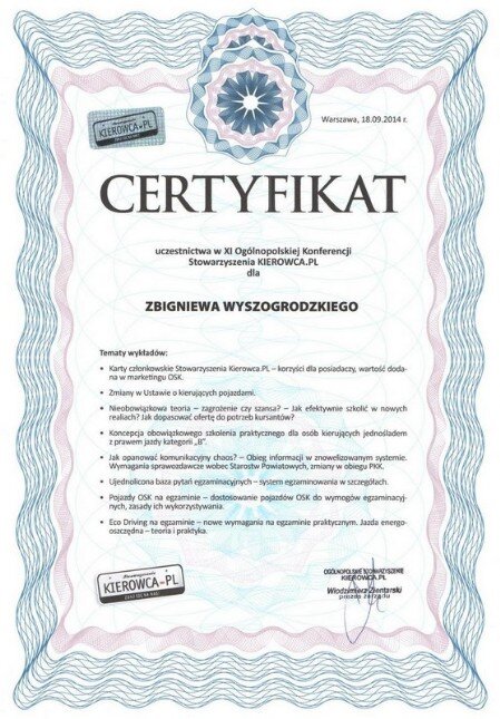 Mamy wykwalifikowaną kadrę instruktorów zdolną wyszkolić bezstresowo najbardziej opornych. Instruktorzy charakteryzują się wysoką kulturą osobistą oraz cierpliwością, co w konsekwencji zapewnia efektywne szkolenie w miłej atmosferze. Systematyczne szkolenia naszych instruktorów umożliwiają zdobywanie nowej wiedzy oraz unikania powszechnych błędów.